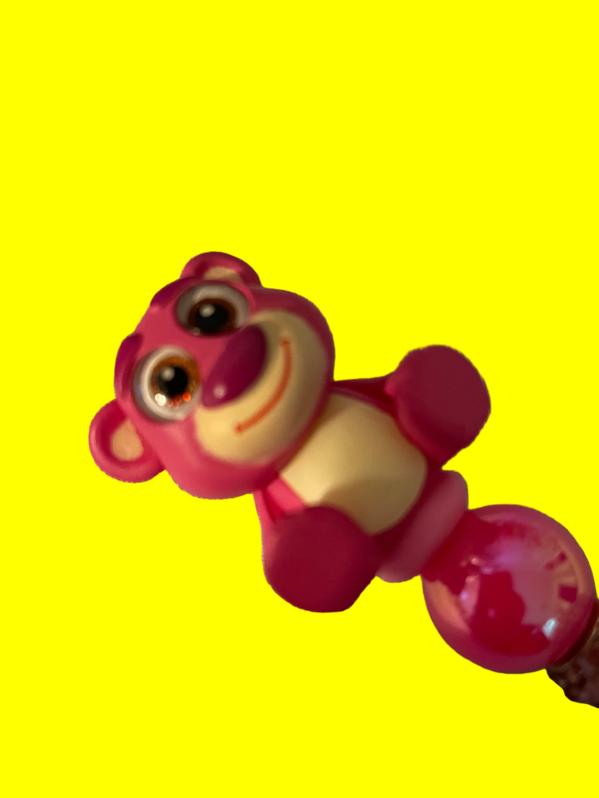Bring a touch of childhood magic to your desk with this Bear Toy Story-inspired beaded pen. Featuring a delightful mix of beads that evoke the lovable bear character from the iconic animated film, this pen is perfect for fans of cozy nostalgia and Pixar charm.