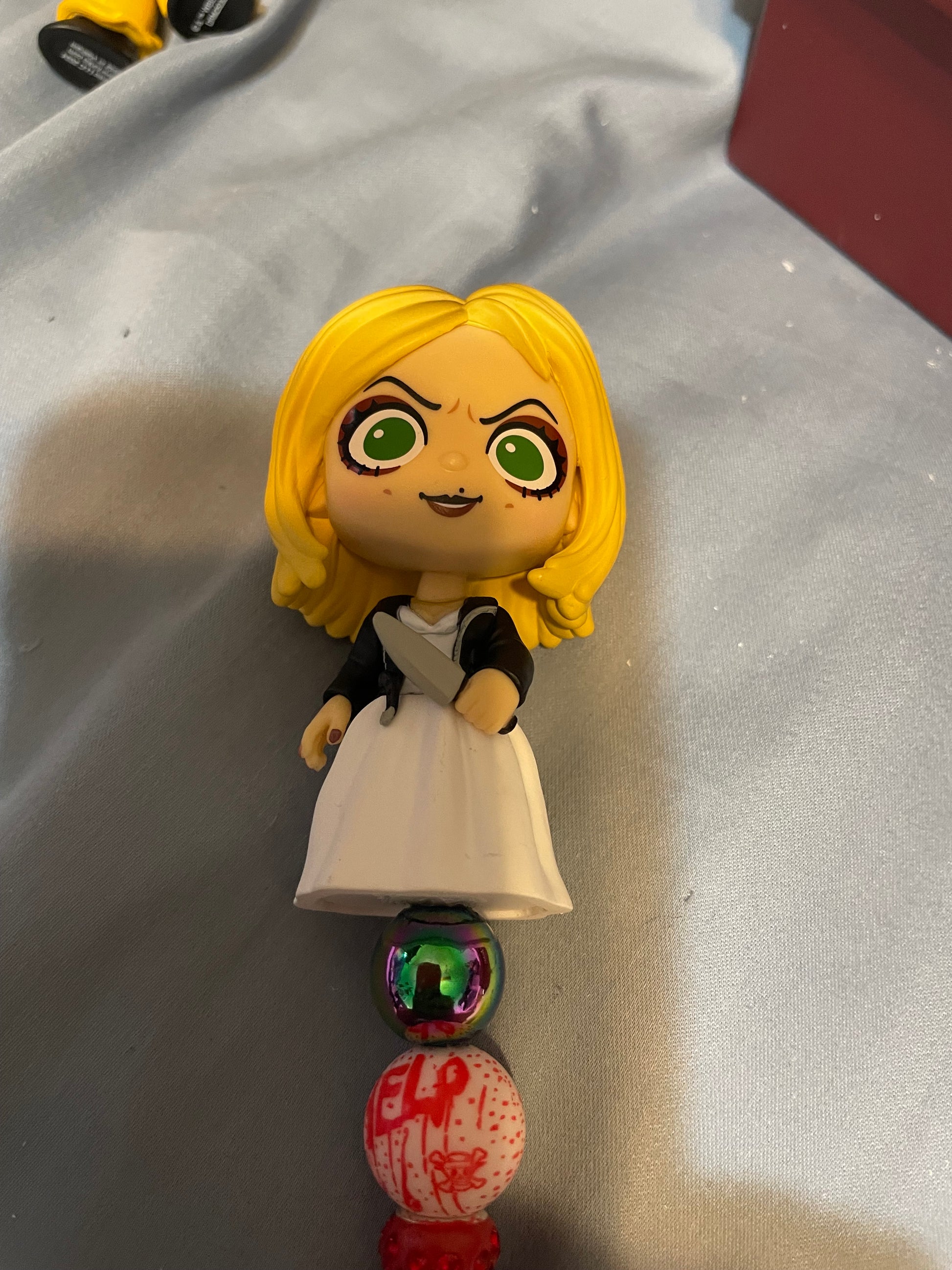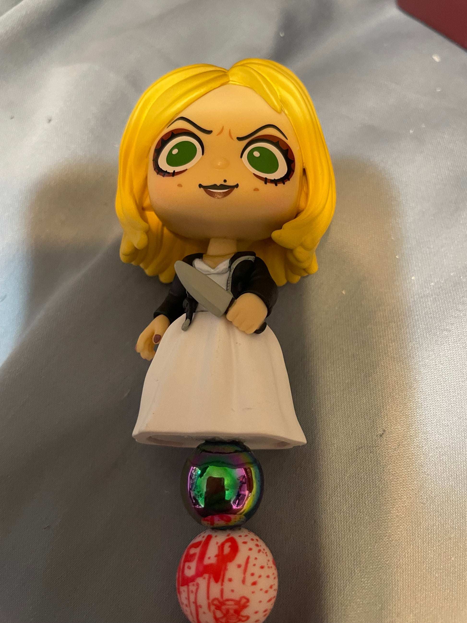 Glamorous, fierce, and a little bit wicked—this handcrafted pen channels the unforgettable style of Tiffany Valentine. Whether you're writing love notes or plotting your next move, this pen adds a killer touch to your stationery stash.